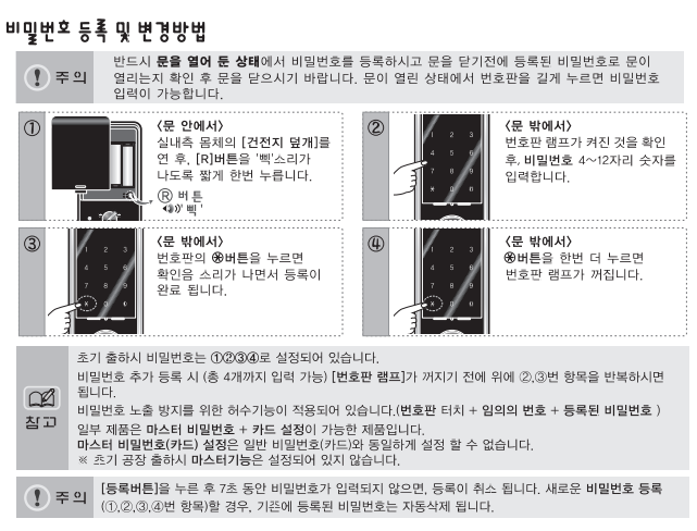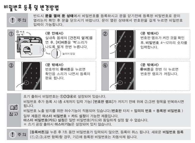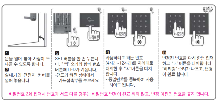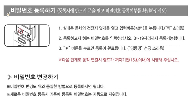 도어락 비밀번호를 변경한 후에는 꼭! 문을 열고 테스트 해보는것을 잊으시면 안됩니다.