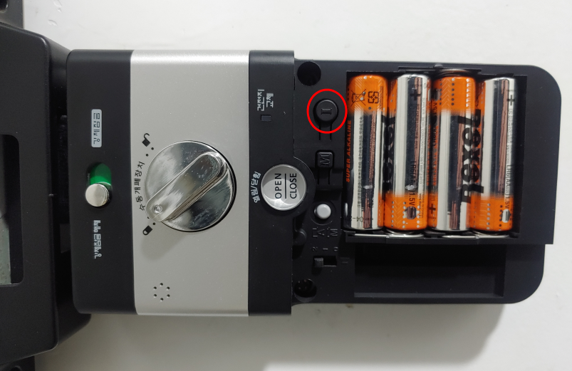 ▼ 도어락 뚜껑을 열면 보통 아래에 표시된 부분과 같이 "I" 또는 "등록" 이라고 표시되어 있는 버튼이 있습니다.